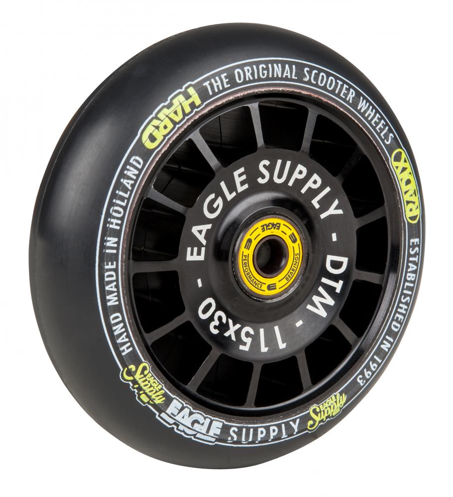Бренд Eagle специализируется только на изготовлении колес для трюкового самоката. Этот голландский бренд можно назвать "отцами" в сфере изготовления колес, потому что именно Eagle выпустили первые полиуретановые колёса с металлическим диском. Позднее компания первая изготовила колёса диаметром 110 мм, колёса 30 мм в ширину (radix) и первые холлоукоры с фуллкорами - то что и по сей день являются стандартами индустрии.