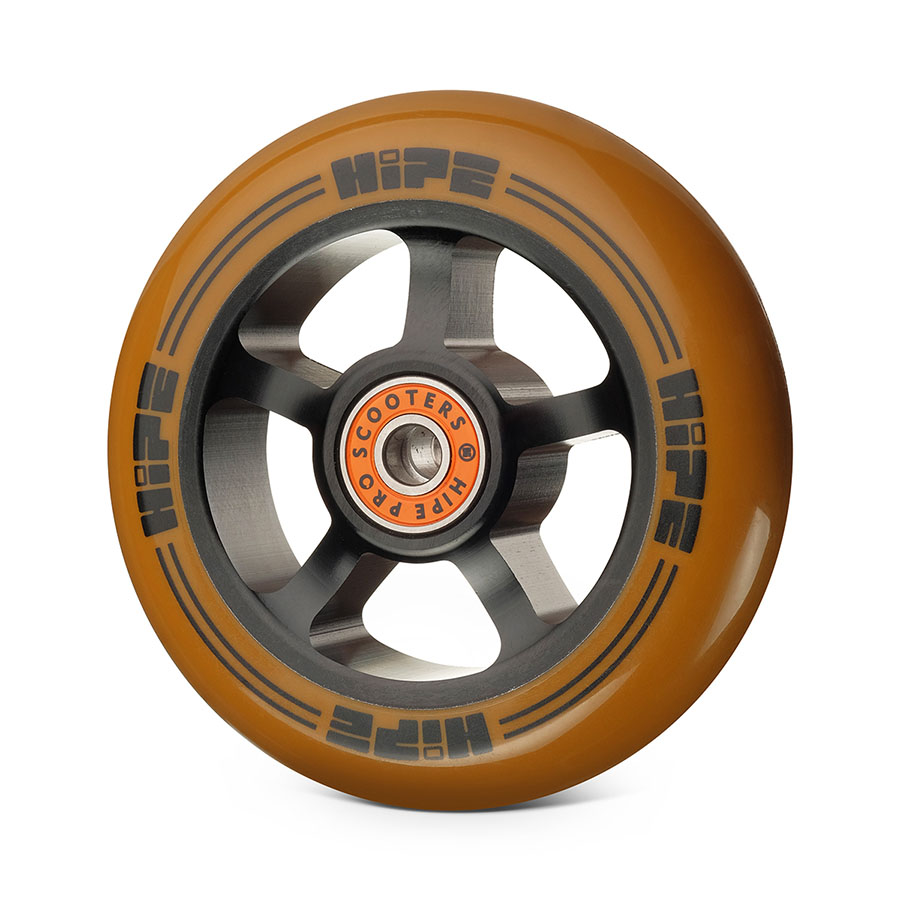 Качественное колесо от испанского бренда Hipe в диаметре100 мм. Очень стильный дизайн, подшипник ABEC9 и гелик жесткостью 88A.