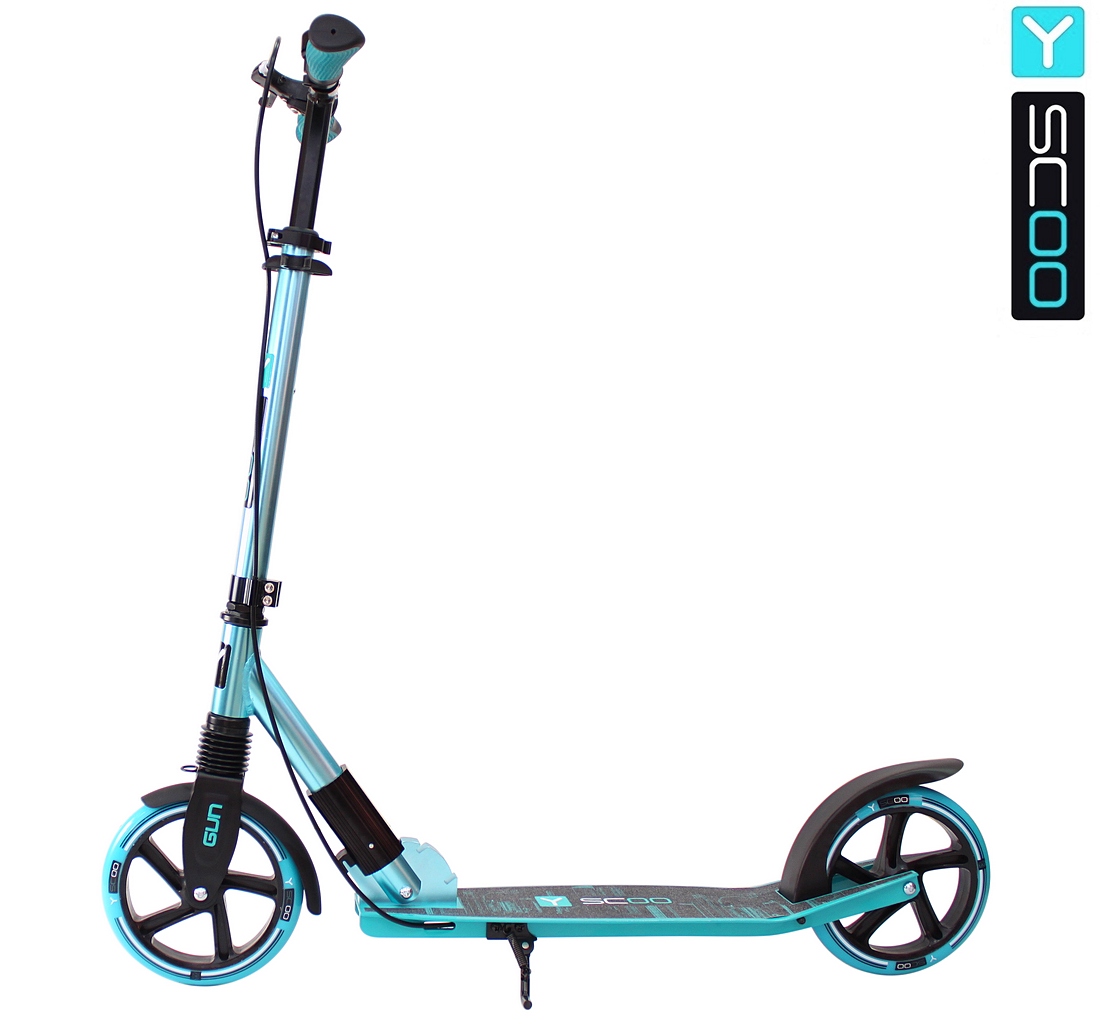 Самокат Y-SCOO GUN 205 голубой с ручным тормозом