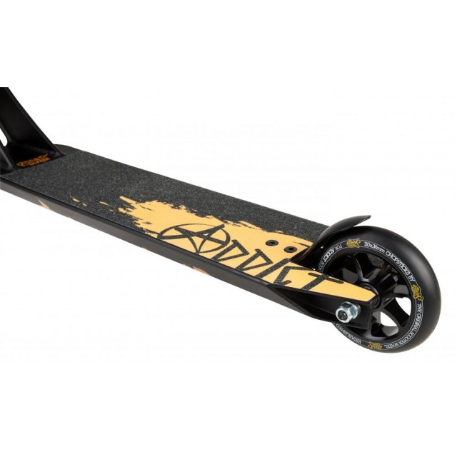 Самокат бренда Addict. Без преувеличения, это один из самых больших комплитов на рынке. Это самокат с декой 4.9"x21.5" и рулем высотой 66 см, что очень большая редкость. Он идеально подойдет для райдеров, которые уже что-то умеют. Впрочем, ничто не мешает использовать его новичкам, желающим сразу купить достойный самокат. Давайте разберемся, что в нем особенного.