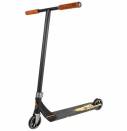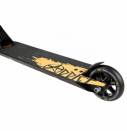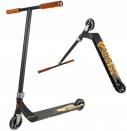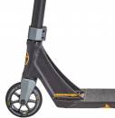 Алюминиевая дека имеет классическую коробчатую форму. Шея деки и рулевой стакан сварены между собой и практически не имеют дополнительных фрезеровок. Шея деки проходит внутрь и проварена со всех сторон, отдельно стоит отметить отдельно проваренный огромный блантспейс. Колеса от Eagle на алюминиевых дисках, руль - стандартная T-bar выполнен из стали. Вилка односоставная, выполненная методом ковки из алюминия. В итоге самокат вышел прочным.