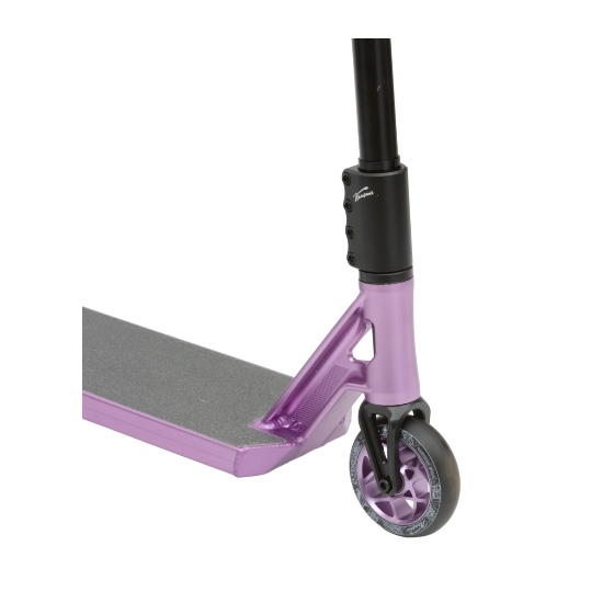 Трюковой самокат от всеми известного российского бренда Комета. Он идеально подойдет для райдеров продвинутого уровня в стрит. Алюминиевая дека с кважратными дропаутами, компрессия SCS и укрепленный Т-образный хроммолибденовый руль позволяют выдерживать серьезные нагрузки. Самокат отлично подойдет для райдеров ростом 170-200 см.