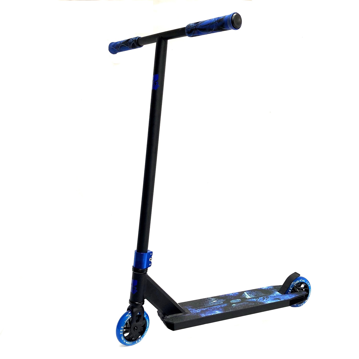 Трюковой самокат райдеров начинающего и продвинутого уровня катания. Модель выполнена из прочного аллюминия и выдерживает нагрузки до 100 кг. Усиленный Т-образный хромолибденовый руль отлично подходит на рост 140-170 см. Самокат оснащен пластиковыми барендами, стальным тормозом, стальными сердечниками в колесах и HIC компрессией.