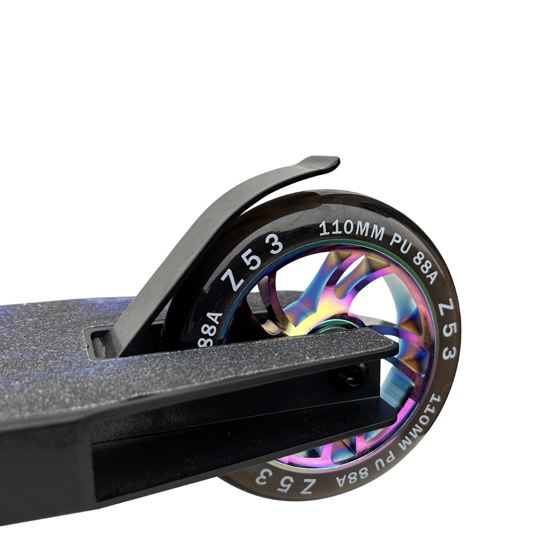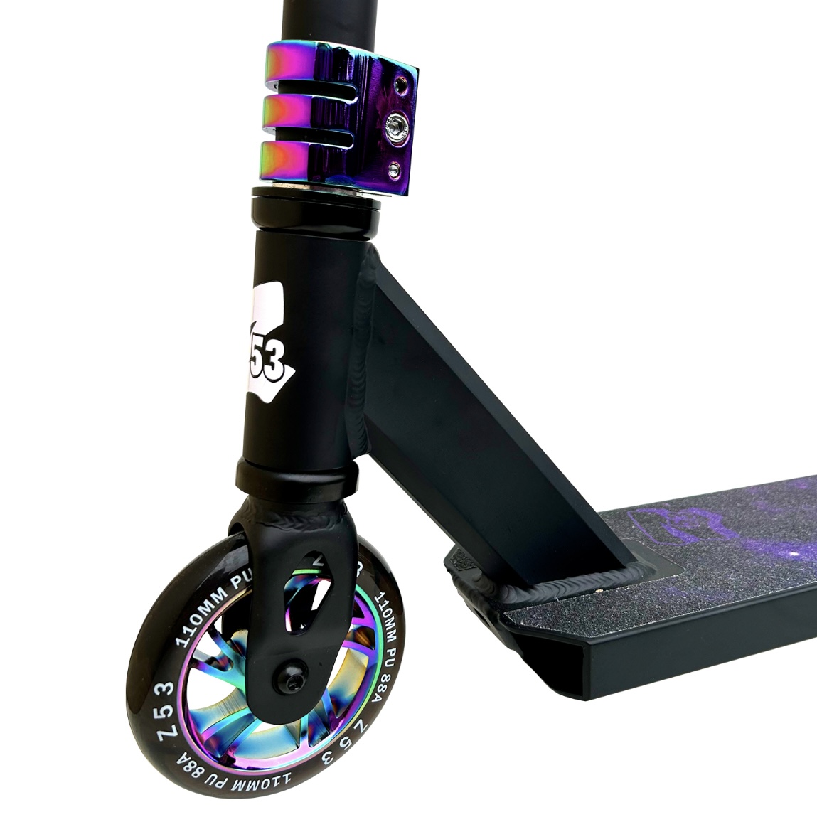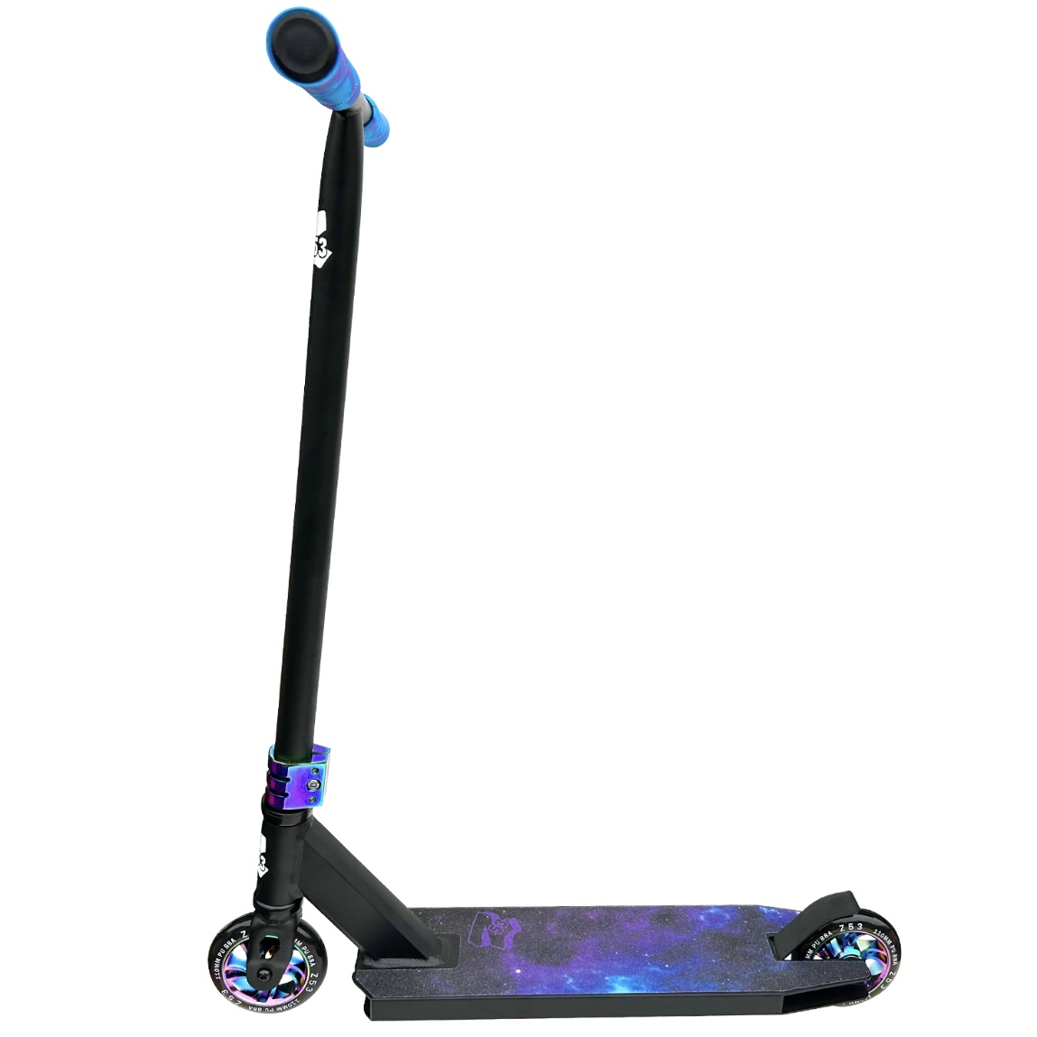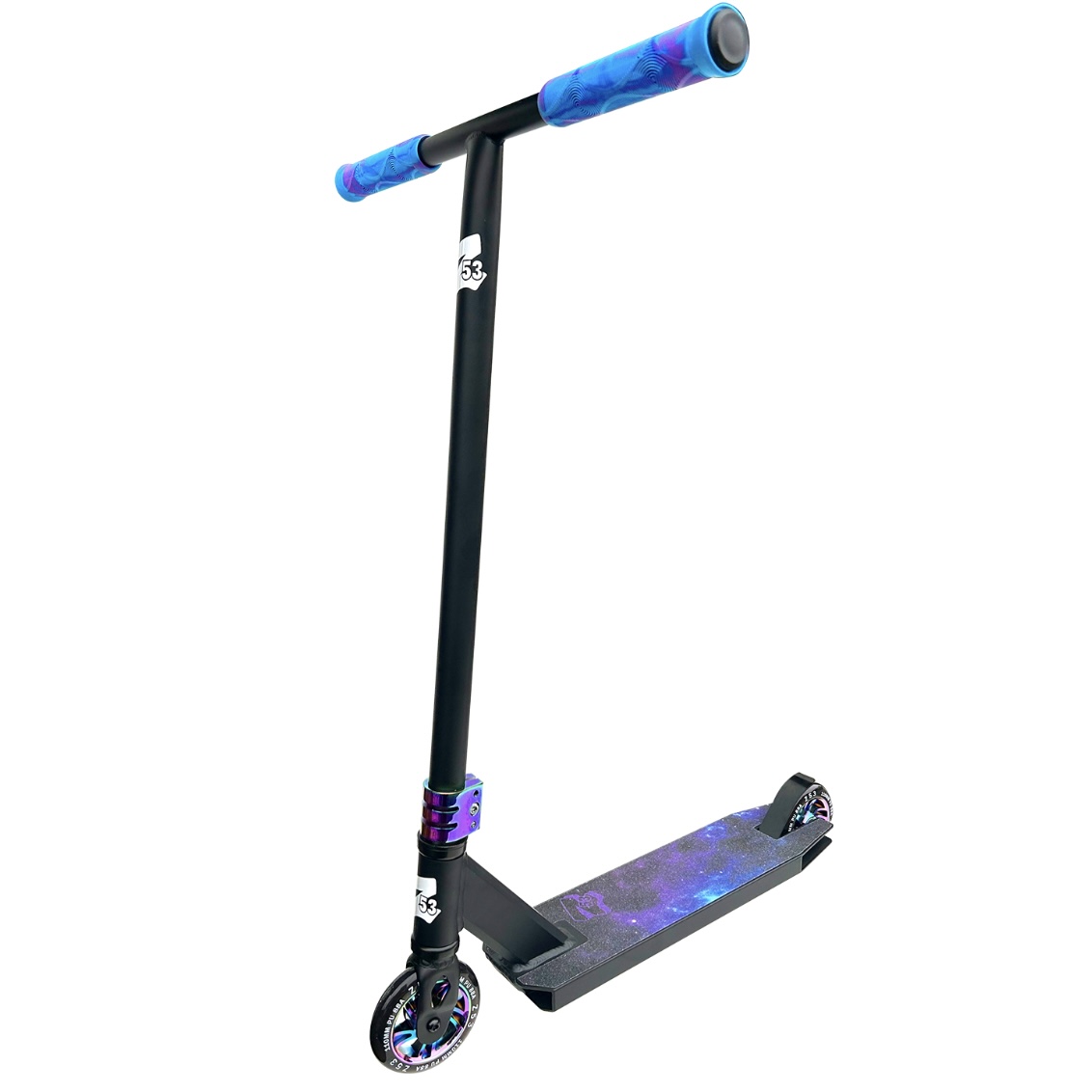 Один из самых лучших трюковых самокатов для новичков на сегодняшний день! Z53 уже давно на самокатном рынке и их главная особенность в том, что они делают действительно качественные трюковые самокаты и по очень доступной цене. На Z53 Space установлена надежная система IHIC,которая подкручивается стандартным шестигранником и крепкий руль из хромомоблибденовой стали. Модель весит всего 3,6 кг, что отлично подойдет для изучения базовых трюков, ведь чем легче самокат, тем проще изучать различные трюковые элементы. А качественные полиуретановые колеса 110 мм с алюминиевой ступицей обеспечат маневренность и мягкость при катании. На самокате установлена крепкая алюминиевая дека(размер 48 см в длину и 11,6 см в ширину). Высота руля - 60 см и ширина- 50 см. А высота руля от пола составляет 82 см, и это значит, что самокат отлично подойдет для ребят с ростом от 135 до 160 см.