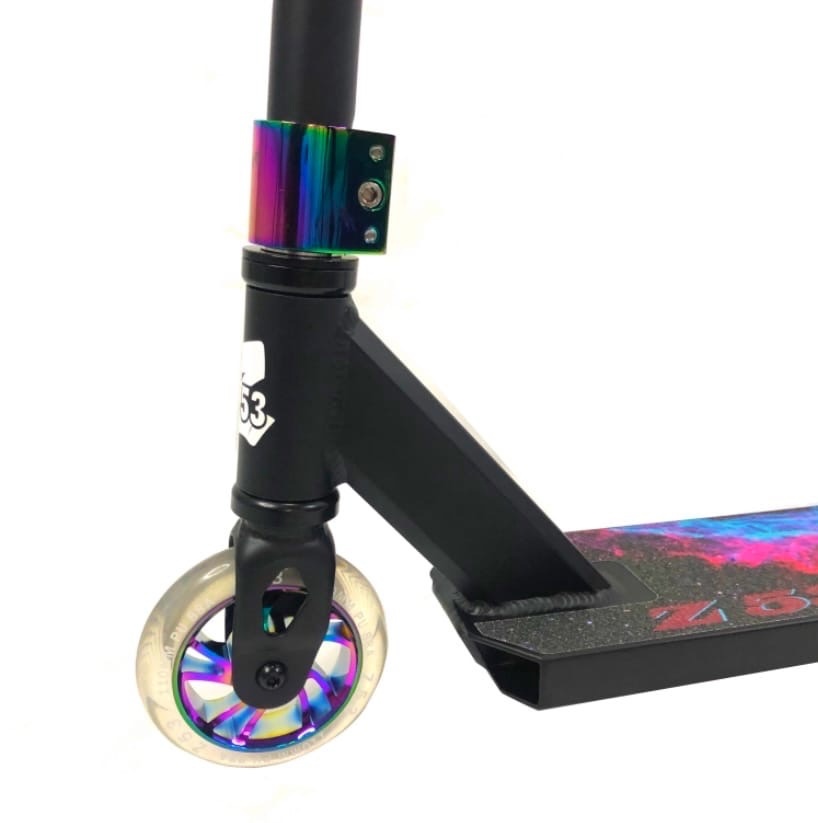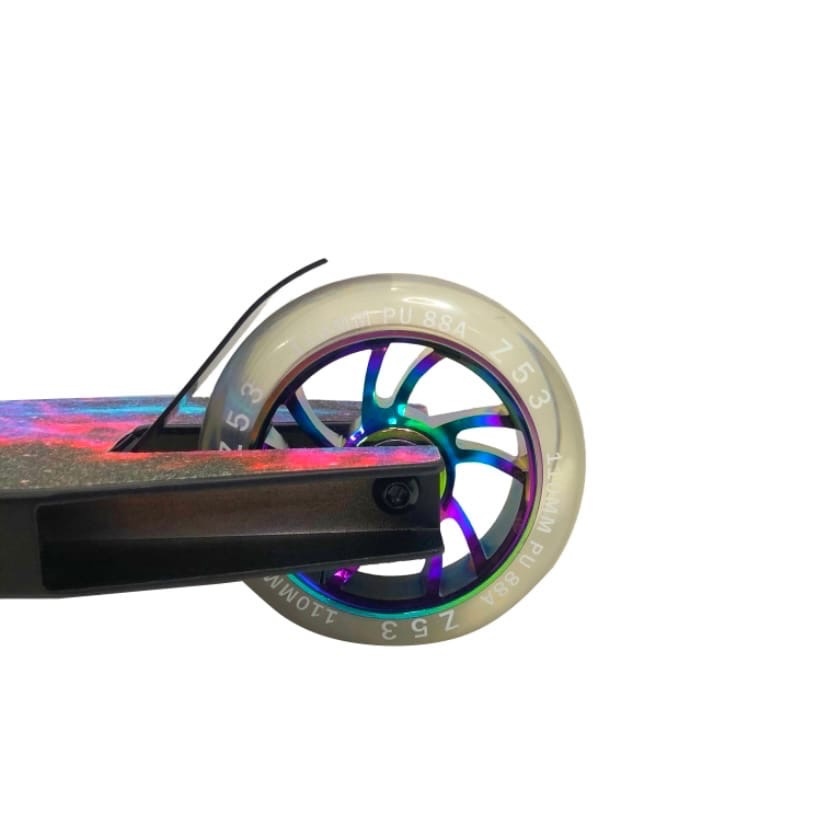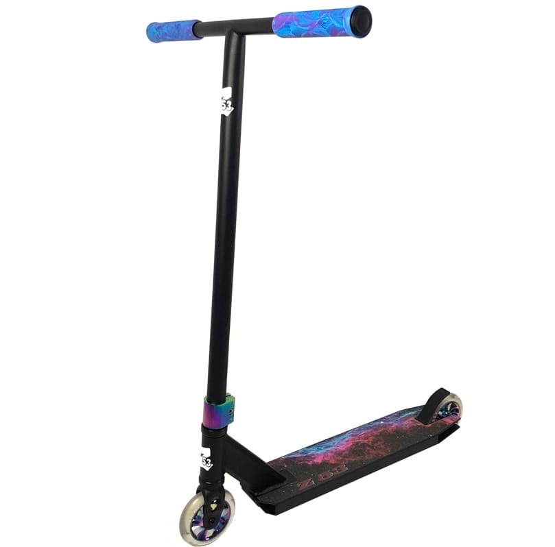 Трюковой самокат райдеров начинающего и продвинутого уровня катания. Модель выполнена из прочного аллюминия и выдерживает нагрузки до 100 кг. Усиленный Т-образный хромолибденовый руль отлично подходит на рост 140-170 см. Самокат оснащен пластиковыми барендами, стальным тормозом, стальными сердечниками в колесах и HIC компрессией.
