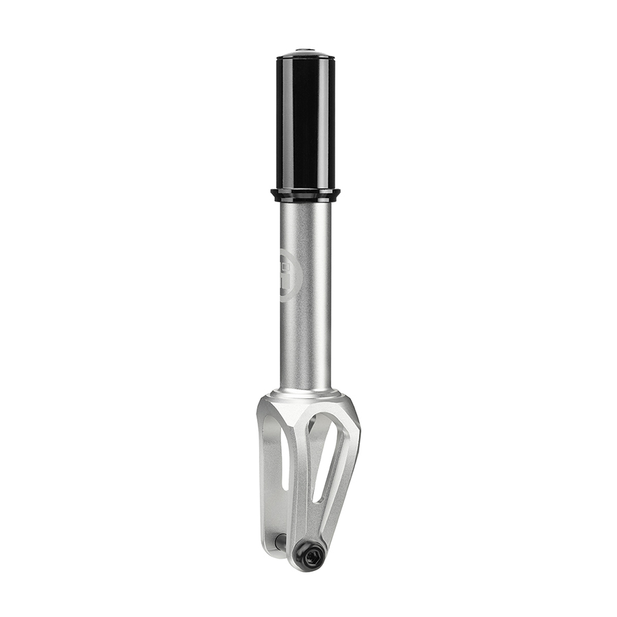 Алюминиевая моноблочная вилка с изящной формой перьев. Усиление в нижней части позволяют не переживать за боковые нагрузки при установке пег. В комплекте с облегченной стальной осью под шестигранник 6 мм.