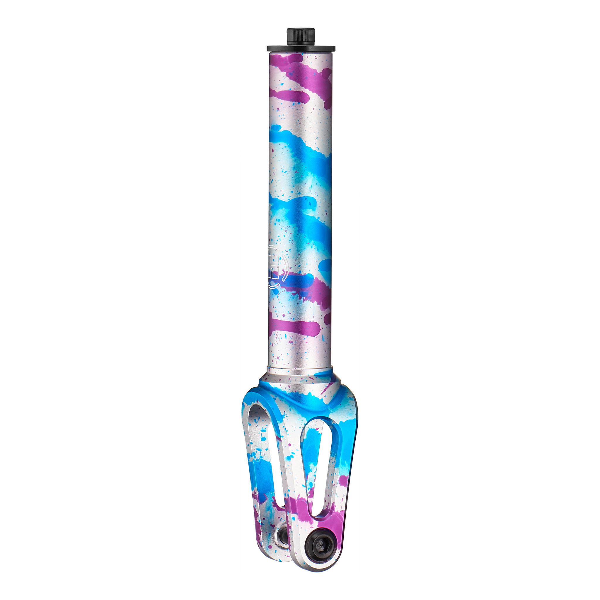 Новинка от легендарного бренда! Алюминиевая моноблочная вилка с изящной формой перьев. Усиление в нижней части позволяют не переживать за боковые нагрузки при установке пег. В комплекте с облегченной стальной осью под шестигранник 6 мм. Подходит под размер колес до 120 мм включительно!